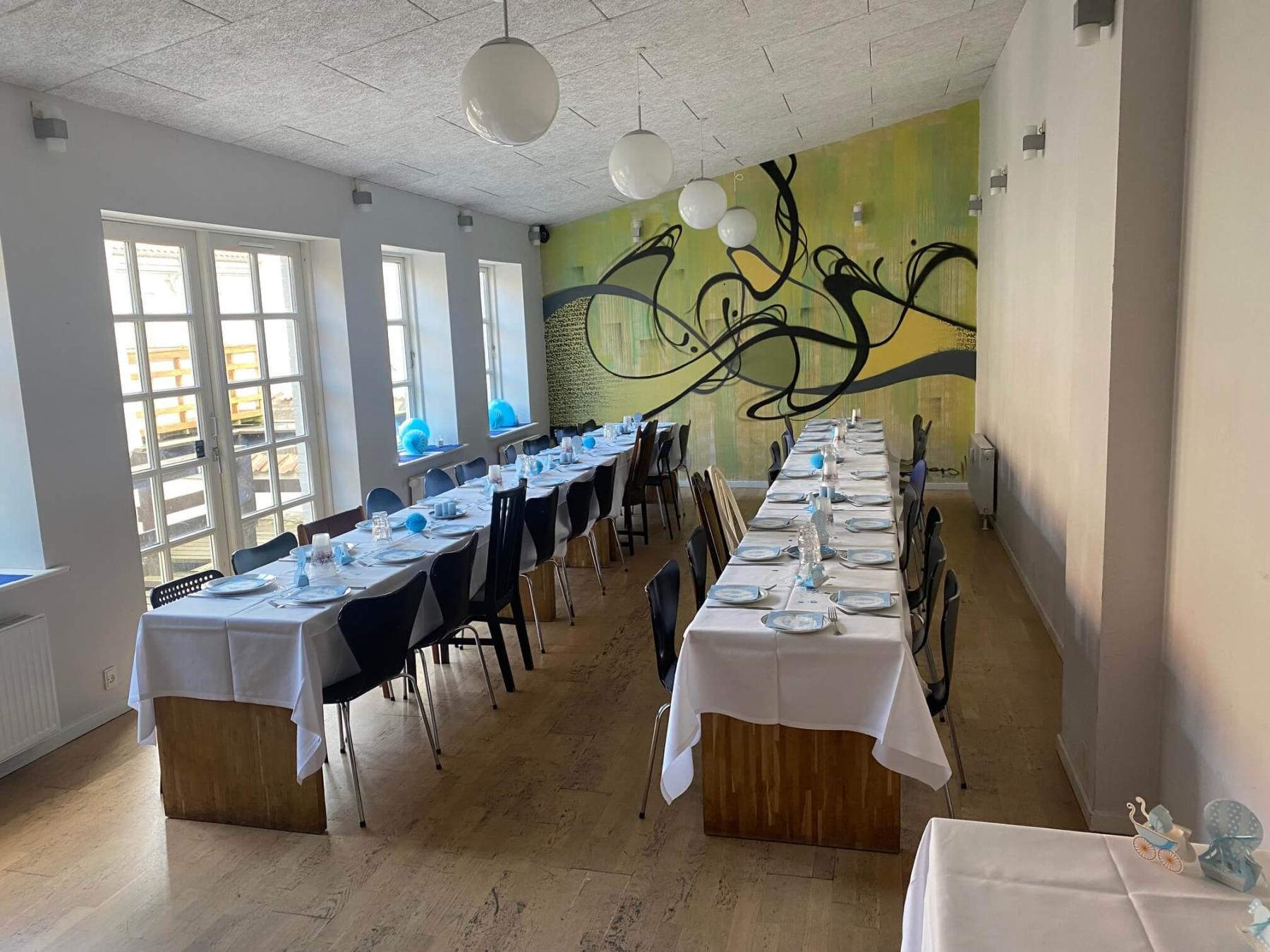 Hold jeres næste arrangement i hyggelige selskabslokaler hos Dice´n Drinks i AalborgVores selskabslokaler er ca. 65 kvm og inkluderer et praktisk anretningskøkken samt plads til overtøj. I får desuden adgang til et stort industrikøkken samt både herre- og dametoiletter, hvilket sikrer gode faciliteter til jeres arrangement.Som en del af Dice´n Drinks, en populær brætspilscafé, vil der være gæster i stueetagen, mens jeres selskab finder sted. Det betyder, at køkkenet deles med caféen, men vi sørger naturligvis for, at det fungerer gnidningsfrit. Vi tilbyder alt nødvendigt service og drikkevarer, mens I selv medbringer maden.Hvis I har lyst til at udforske vores imponerende samling af over 700 brætspil, er I mere end velkomne til at gøre det under lejemålet. Det er en oplagt mulighed for at tilføje lidt ekstra sjov og hygge til jeres arrangement.Vi hjælper gerne med ovne og køleplads, og hvis I har brug for adgang til lokalerne før den normale åbningstid, er vi fleksible og imødekommer dette efter aftale.Service kan lånes af caféen, så længe I selv sørger for rengøringen efter brug.Uanset om det er en fødselsdag, firmafest eller en hyggelig sammenkomst med venner og familie, står vi klar til at skabe rammerne om en uforglemmelig dag.