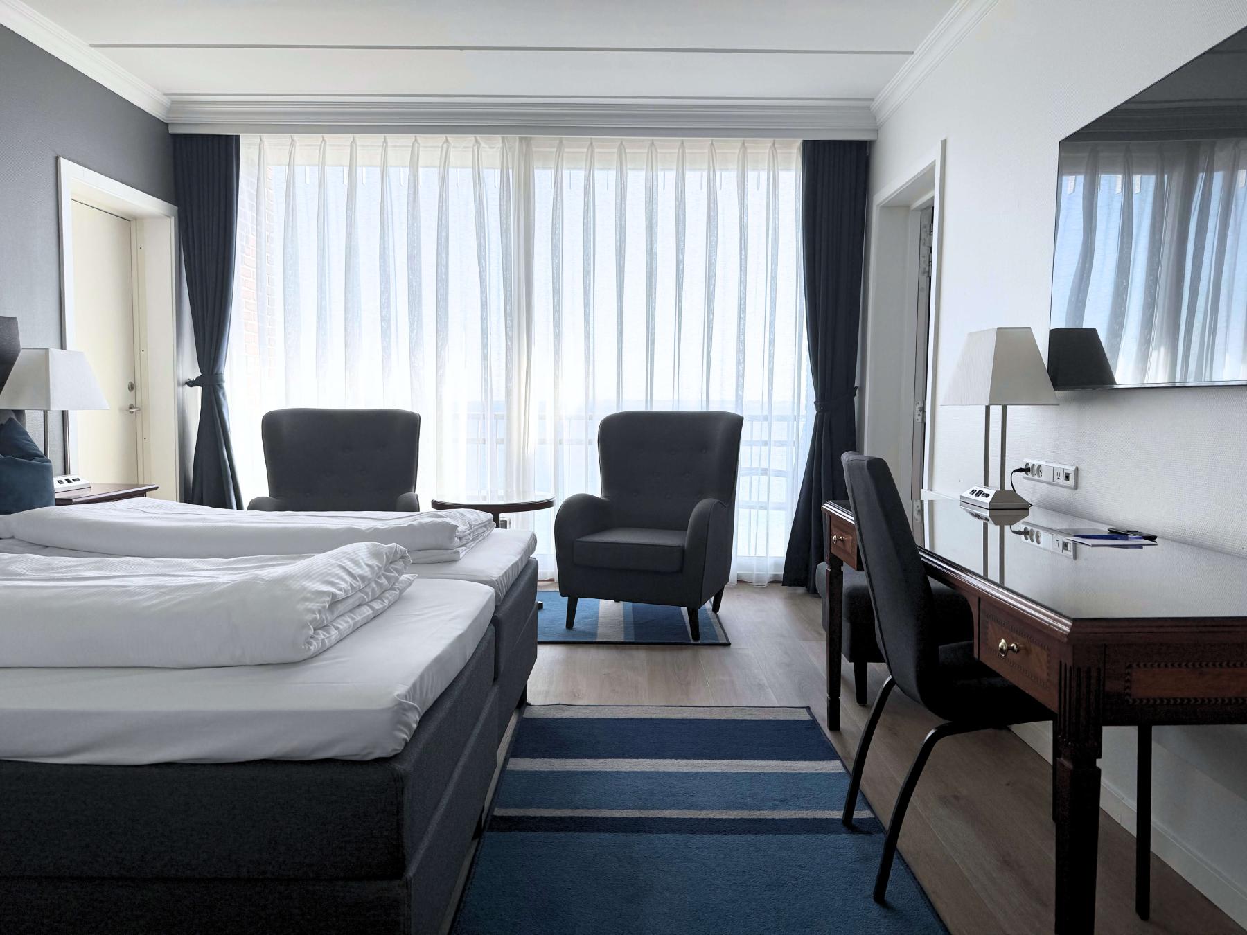 Velkommen til Helnan Marselis HotelDet er med stor glæde, at vi byder dig velkommen til Helnan Marselis Hotel – et enestående hotel beliggende direkte ud til Aarhusbugten, omgivet af skov og strand, og blot få minutter fra Aarhus’ pulserende bymidte. Her får du en helt unik kombination af naturskøn ro og storbyens mange oplevelser – perfekt til både afslapning, romantiske getaways, ferier og forretningsrejser.Vores hotel er designet til at give dig en helhedsoplevelse, hvor komfort, kvalitet og nærvær går hånd i hånd. Vågn op til lyden af bølger og nyd den fantastiske udsigt over havet fra mange af vores værelser. Start dagen med en lækker morgenbuffet i vores restaurant, hvor der er fokus på friske, lokale råvarer – og slut aftenen af med et godt glas vin, mens solen går ned over horisonten.Vi tilbyder et bredt udvalg af faciliteter, der gør dit ophold både behageligt og inspirerende. Dyk ned i vores indbydende, opvarmede indendørs pool, eller tag en afslappende stund i loungen med en god bog. De omkringliggende skov- og strandområder indbyder til lange gåture, løbeture eller blot ro i naturen.Helnan Marselis Hotel er også det ideelle valg for erhvervsrejsende og virksomheder, der ønsker at kombinere forretning med fornøjelse. Vi råder over moderne møde- og konferencefaciliteter med alt det nødvendige udstyr og en professionel service, der sikrer, at dine arrangementer forløber gnidningsfrit. Her kan du afholde alt fra små møder til større konferencer, i inspirerende rammer tæt på naturen.Uanset anledningen står vores dedikerede personale klar til at give dig en personlig og imødekommende service fra det øjeblik, du træder ind ad døren. Vi glæder os til at byde dig velkommen og give dig en oplevelse, du sent vil glemme.