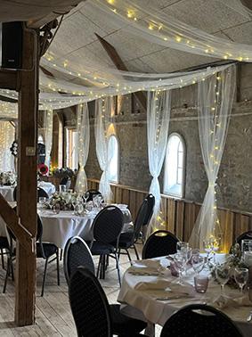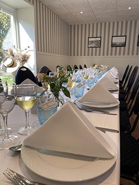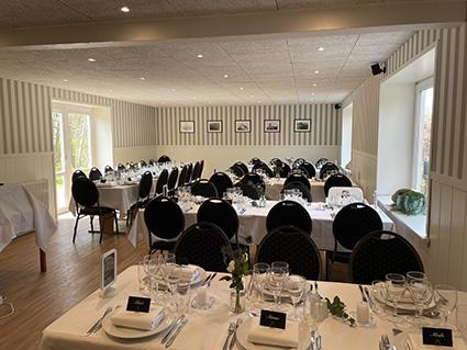 Receptionen tilbyder også en ideel ramme for mindre forretningsmøder og seminarer.Teknisk udstyr: Flipover, Lærred, Projektor, Wifi Bordopstillingsmuligheder: Langborde (40), Stående (50)