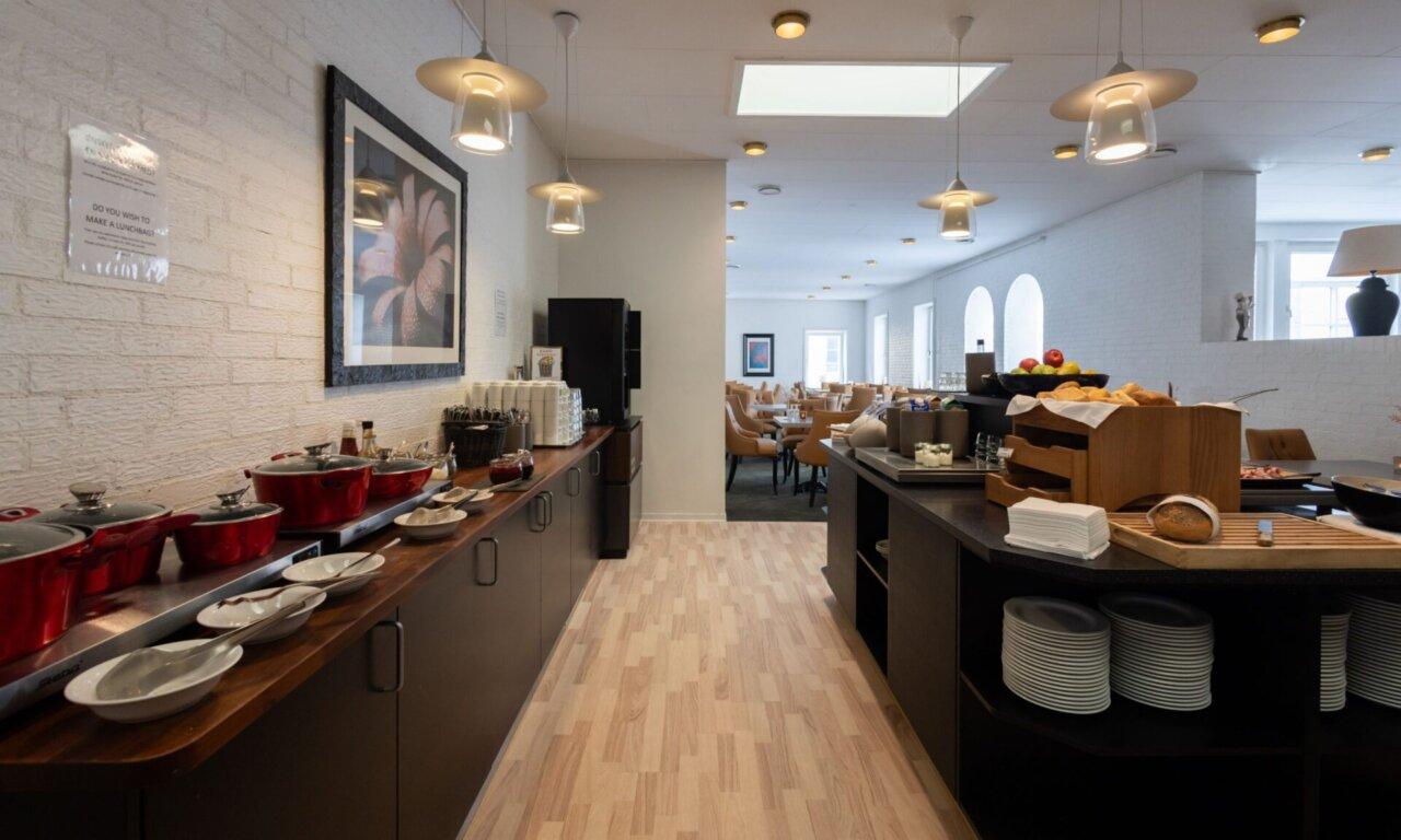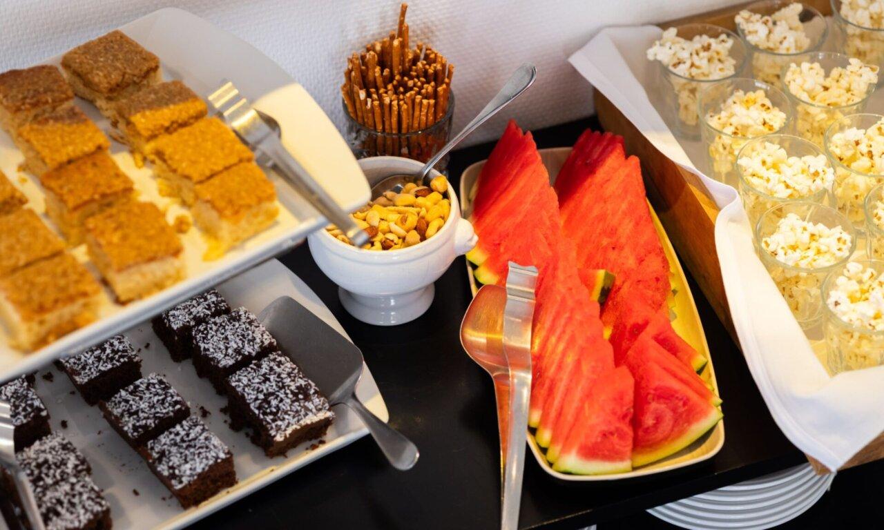 Der kan bestilles let morgenmad, frugt, sandwich, eller eftermiddagskage